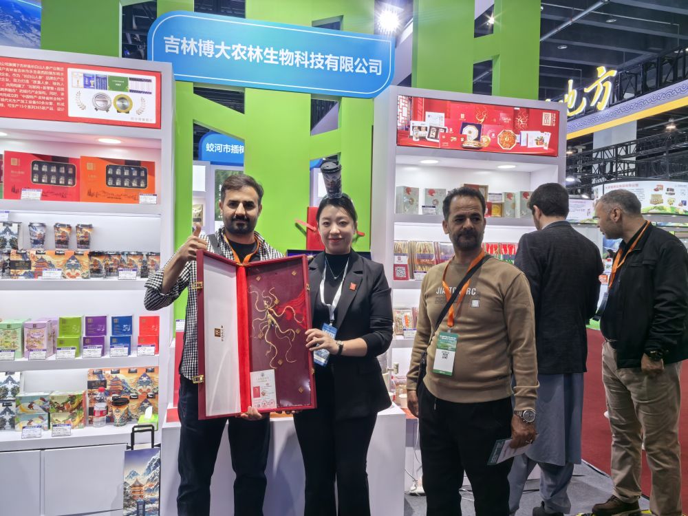 据了解,以“白山松水 林海参乡 鹿苑蛙谷 吉祥森林”为主题的吉林馆位于博览中心核心展区,以长白山、松花江等自然生态元素为设计灵感,突出“天然、绿色、健康”的产品内涵。长白山人参、红松籽、林蛙、灵芝、桑黄、榛子、桦树汁、二氢槲皮素等14类百余款优质原生态产品逐一亮相,吸引了众多客商驻足品鉴、洽谈合作。