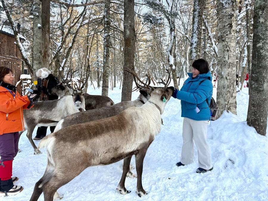 “这里好像童话世界!雪就像棉花糖一样!”来自广东的丁美莹一家人在老里克湖景区玩得不亦乐乎,他们穿着厚厚的羽绒服,戴着帽子、手套和围巾,先是在雪地里投喂了温顺的驯鹿,接着就去坐雪地摩托,冷风扑面、雪花飞溅,大家都十分开心。“我们还预订了雪屋的住宿,非常梦幻,这里满足了我们对冰雪童话世界的全部想象。”丁美莹说。