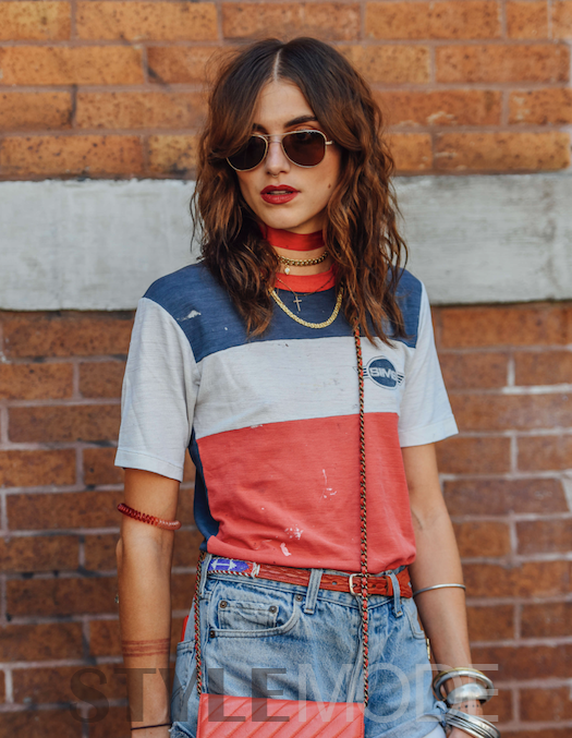 如果今天选择了一款舒适的T恤,就把项链露在外面,搭配出层次感。这时,选择的坠饰和金属链就不宜过大,否则会在视觉上加重上半身的分量。