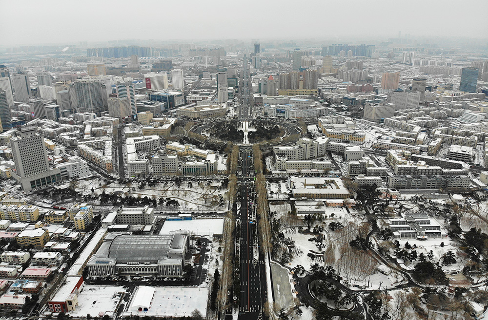 无人机航拍-长春市人民大街雪景。 新华网 邵守志摄