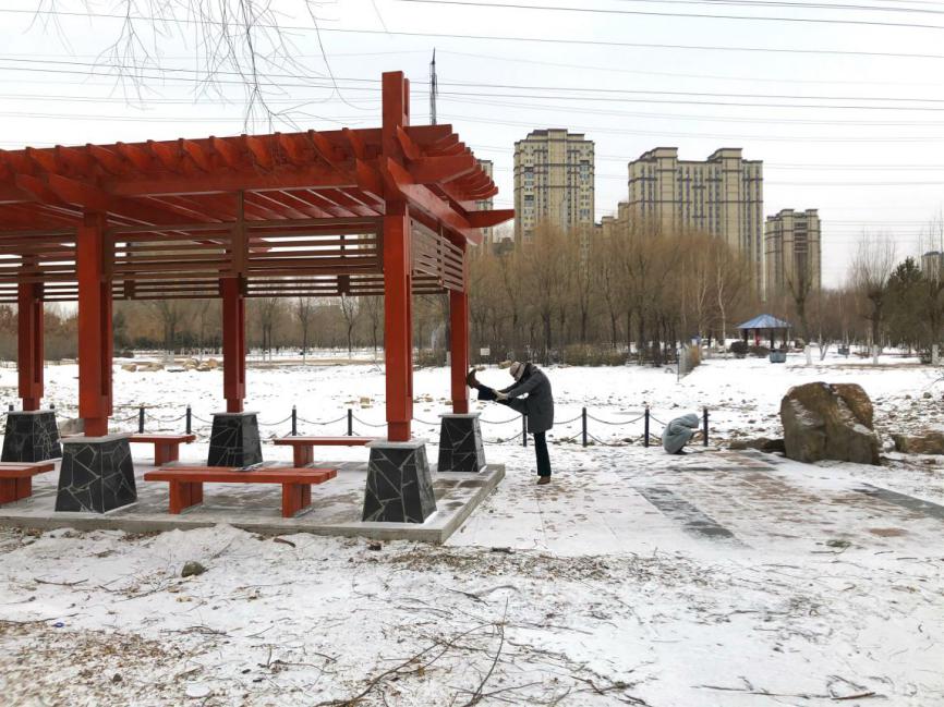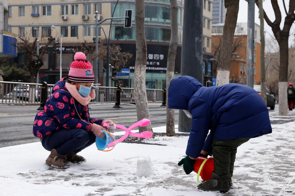 雪花不断飘落,人民广场、儿童公园等地再现迷人雪景,为城市增添了无限雅趣。返岗复工的行人、公园里健身的群众、街边玩雪的孩子,传递出这座城市正逐步焕发的活力。