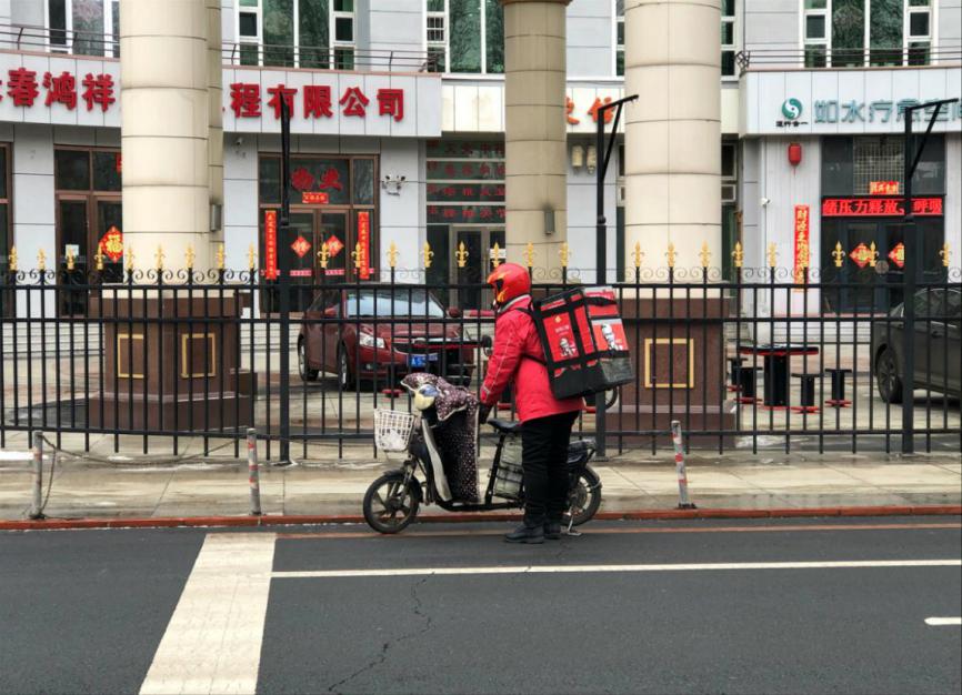 “您的外卖到了,请戴好口罩取餐。” 新华网 夏一铭摄