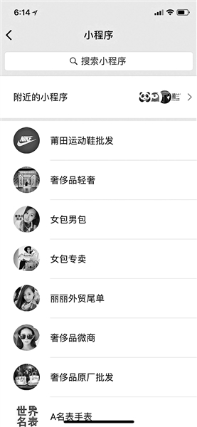 一名小程序开发员告诉北青报记者,在他们设计制作好小程序后,还要提交微信方面进行审核。因此,他建议伪装成售卖高仿商品的:“小程序的名字不要太霸气,别直接把大牌名写上去。”