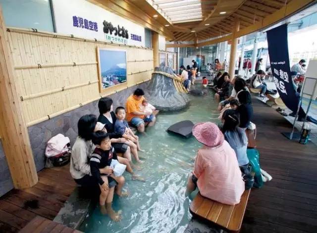 在鹿儿岛的机场也有足湯,这里聚集了很多的人,非常热闹。