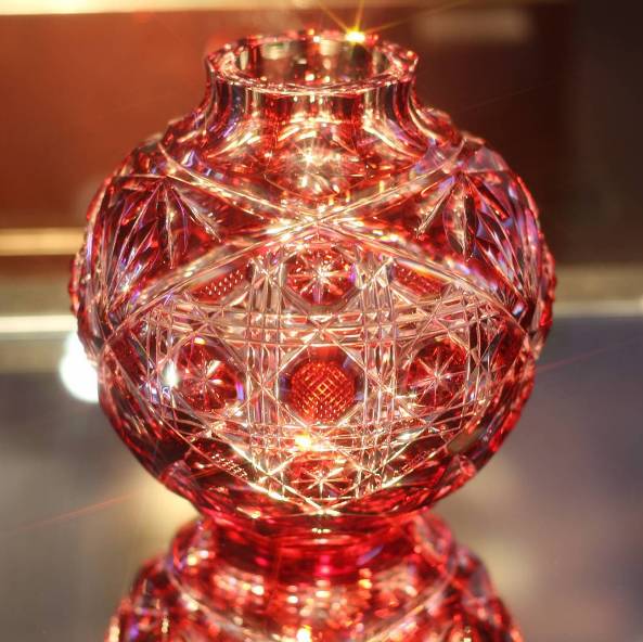 江户切子,1834年发源于日本江户,“切子”即纯手工用金刚砂在水晶器表面切割磨刻细腻花纹的工艺,所制图形没有草稿,全凭匠心,一气呵成,非常有人气。