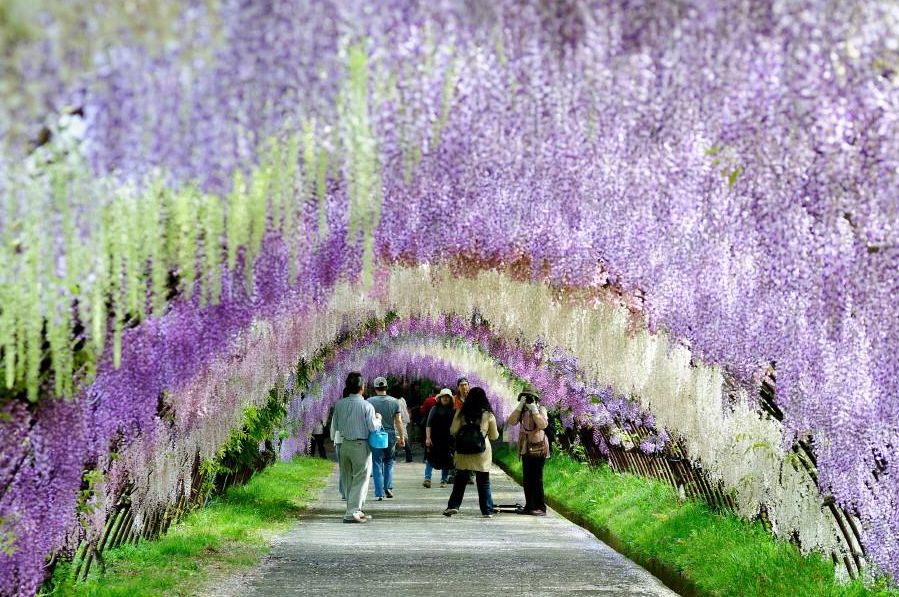 福冈县“河内藤园” 日本最美紫藤萝隧道