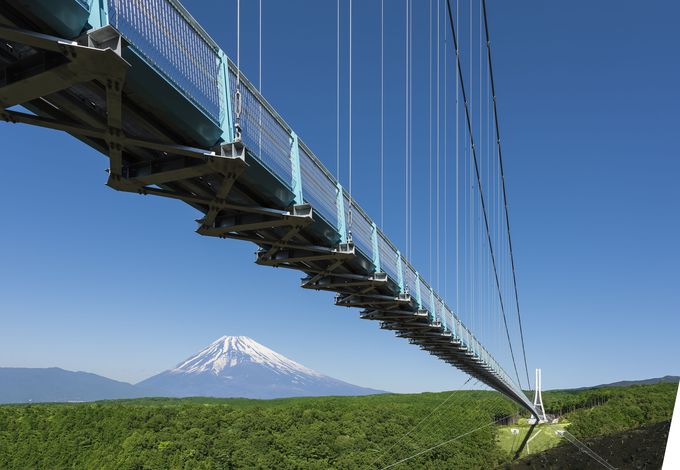 2015年12月14日,位于静冈县三岛市的“箱根西麓 三岛大吊桥”正式落成。行走在吊桥上,如空中漫步一般。因而又被冠以“三岛SKY WALK”的爱称。作为步行者专用吊桥,全长400m,为日本最长的吊桥。