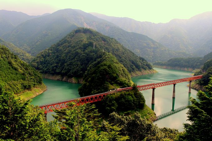 更奇妙的是,环绕四周的人造大坝湖的颜色还会随着天气、时间等产生变化,时而湛蓝、时而翡翠绿、时而灰色。当蒸汽火车沿着“奥大井彩虹桥”缓缓驶入时,您一定会目不转睛,折服于这种令人窒息的美。
