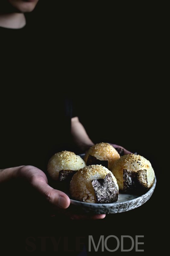 5、脱下保鲜膜后,将调拌好的金枪鱼放在饭团顶上,最后撒点葱花点缀即可。