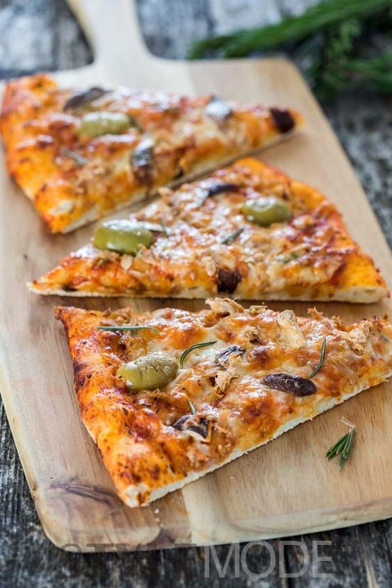 准备食材:金枪鱼一罐、披萨面皮一份(面团总量180G)、披萨酱一份、橄榄油30G、辣椒汁2小包、黑橄榄5个、马苏120G