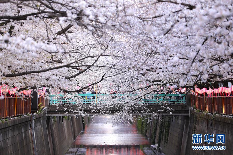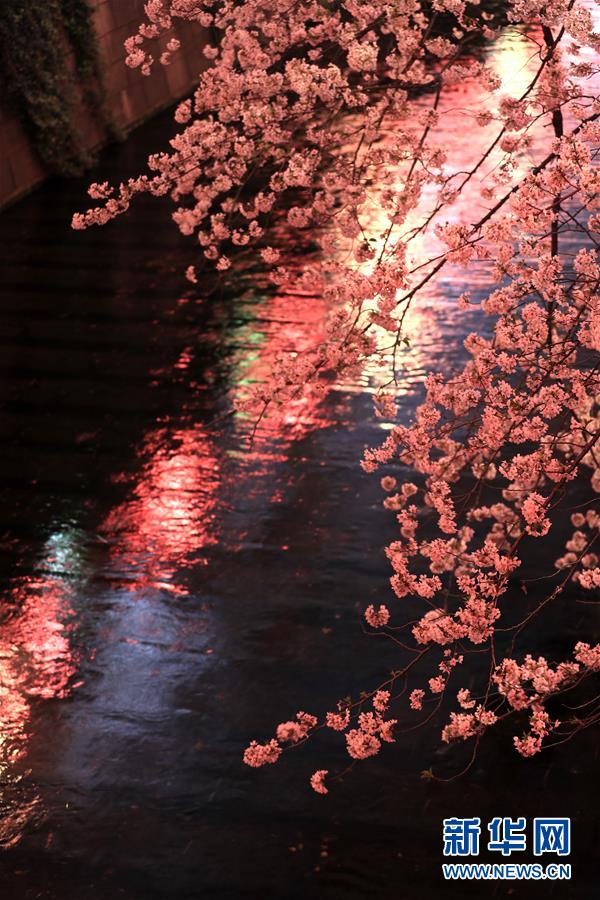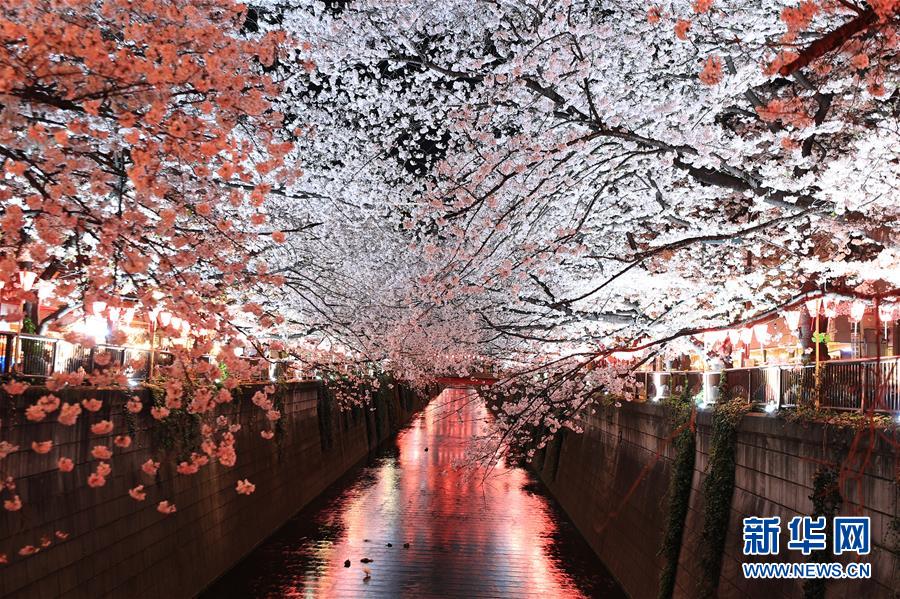 日本近日正是樱花花季。东京目黑川两岸的樱花正在盛开,夜晚时分在灯笼的点缀下愈发迷人,吸引世界各地的游客前来欣赏游玩。新华社记者 杜潇逸 摄