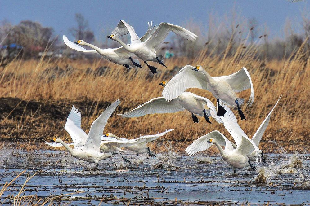 春到松原 查干湖畔鸟儿飞