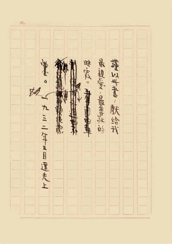 “谨以此书,献给我最亲爱,最尊敬的映霞。五年间的热爱,使我永远也不能忘记你那颗纯洁的心。一九三二年三月达夫上”