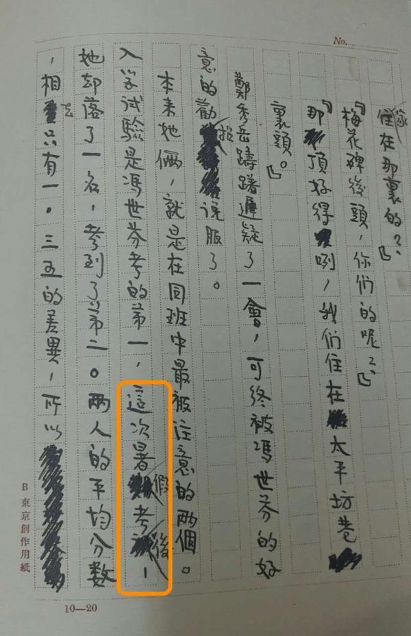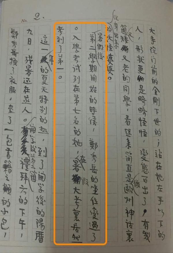 6、【文化典藏】在下文中也是这样,“本来她俩,就是在同班中最被注意的两个。入学试验是冯世芬考的第一,这次暑假考后,她却落了一名,考到了第二”这句话中,“暑期考试”被改成了“暑假考后”。