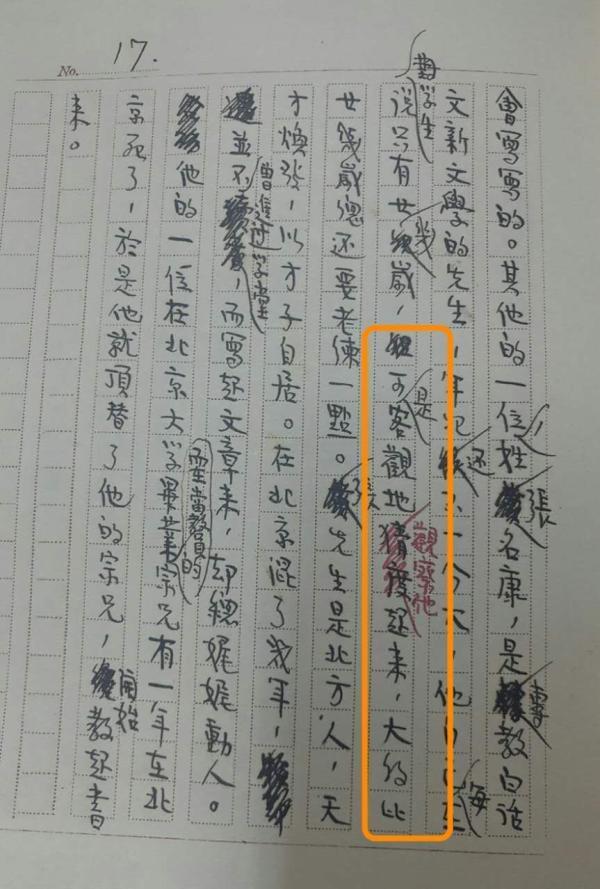 11、【文化典藏】手稿中还有为数不多的红笔改动处,不知道是不是全部写完后最后对用词进行的斟酌修订。