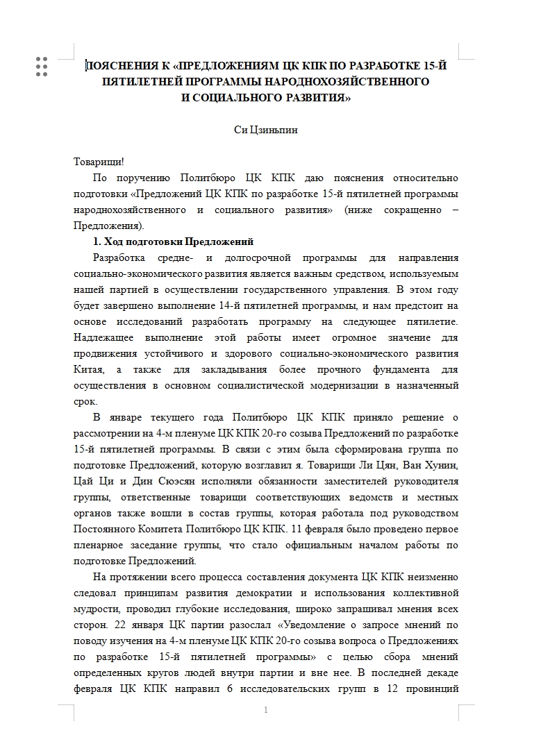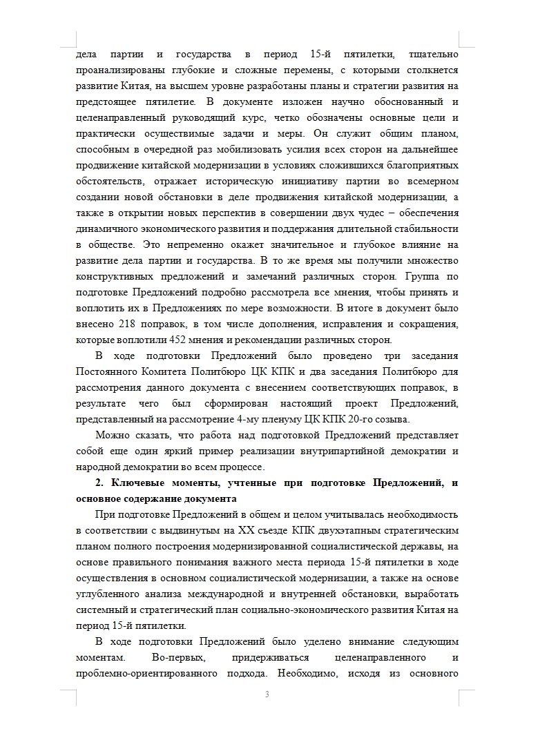 ПОЯСНЕНИЯ К «ПРЕДЛОЖЕНИЯМ ЦК КПК ПО РАЗРАБОТКЕ 15-Й ПЯТИЛЕТНЕЙ ПРОГРАММЫ НАРОДНОХОЗЯЙСТВЕННОГО