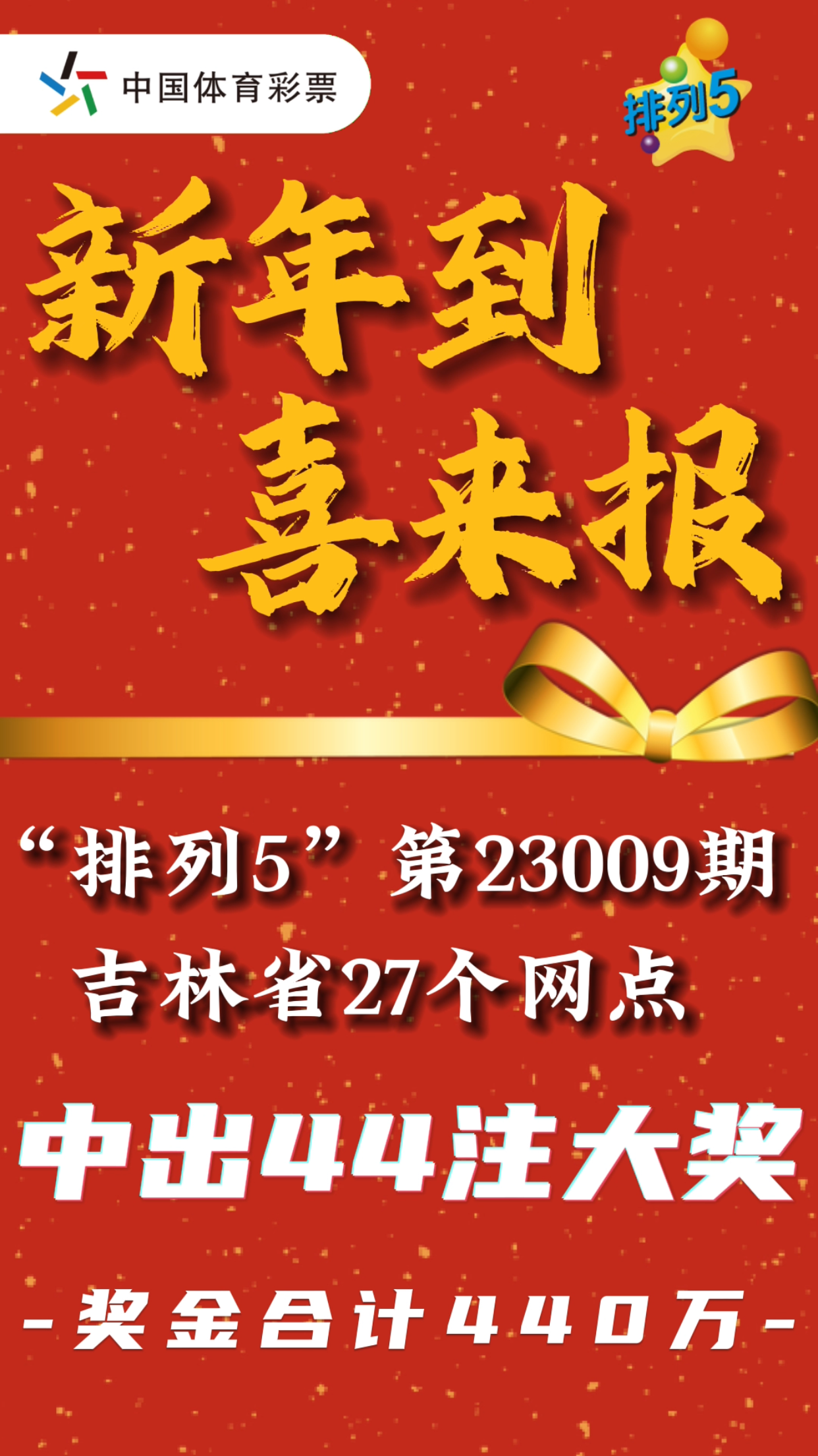 新年到,喜来报!2023年吉林省体彩好运不断,大奖井喷!1月9日晚,体彩“排列5”第23009期开奖,开出中奖号码为“2、2、1、0、4”。吉林省八个地区、27家体彩代销点共计中出44注大奖,奖金合计440万。别看单注固定奖金10万元的“排列5”只是中国体育彩票的小盘玩法,但其受欢迎程度绝非“浪得虚名”。