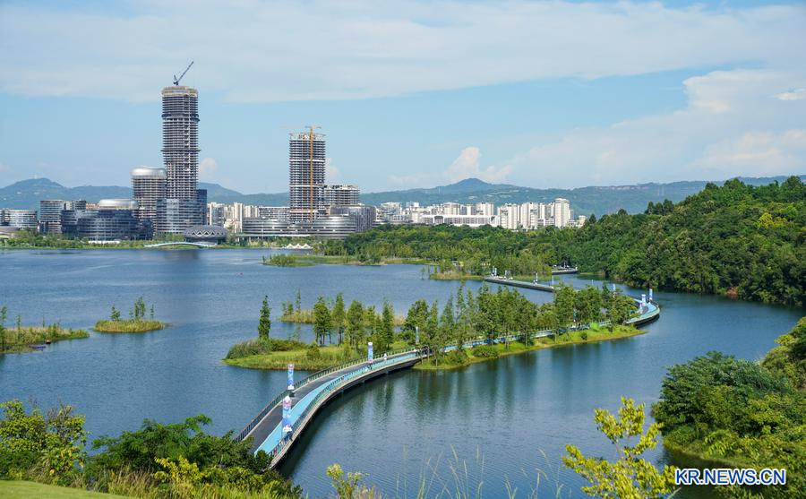 지난 7월 26일 쓰촨(四川)성 톈푸(天府)신구의 싱룽후(兴隆湖) 습지공원. (사진/신화통신)