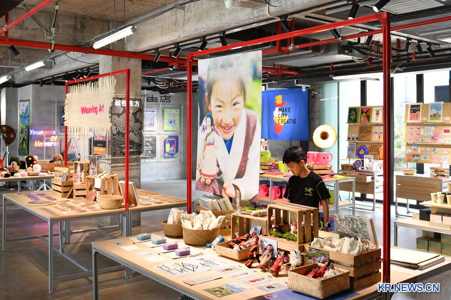 7월 13일 후난(湖南)성 창사(长沙)시에 위치한 유지공장 아트숍에서 상품을 고르는 어린이. (사진/신화통신)