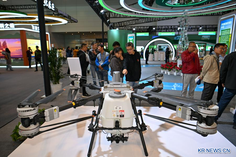 '제22회 중국국제농산물교역회'를 찾은 관람객들이 17일 농업과학기술 전시구역을 둘러보고 있다. (사진/신화통신)