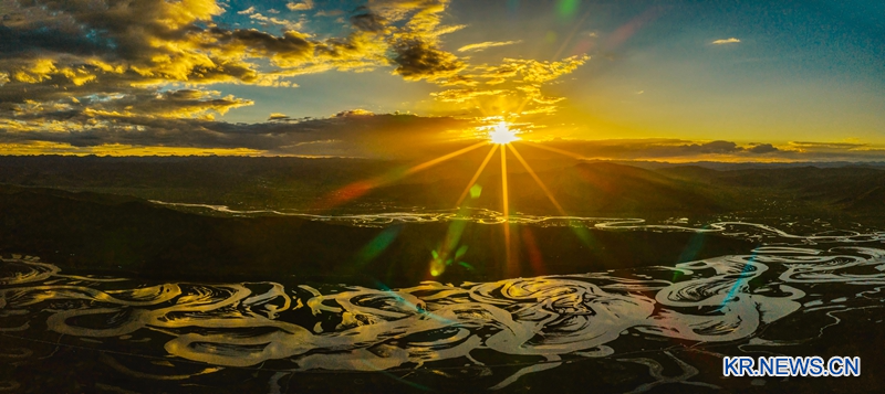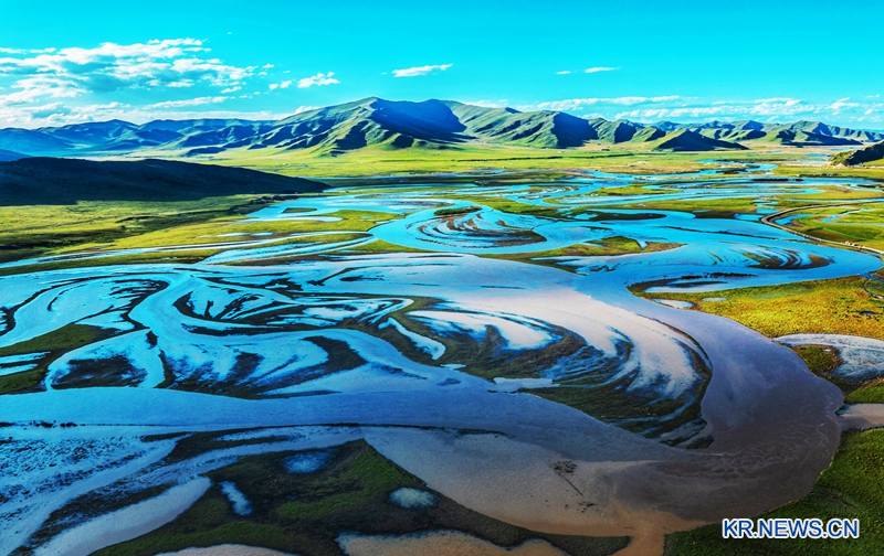 하늘에서 내려다본 만쩌탕(漫泽塘)습지대초원 풍경.