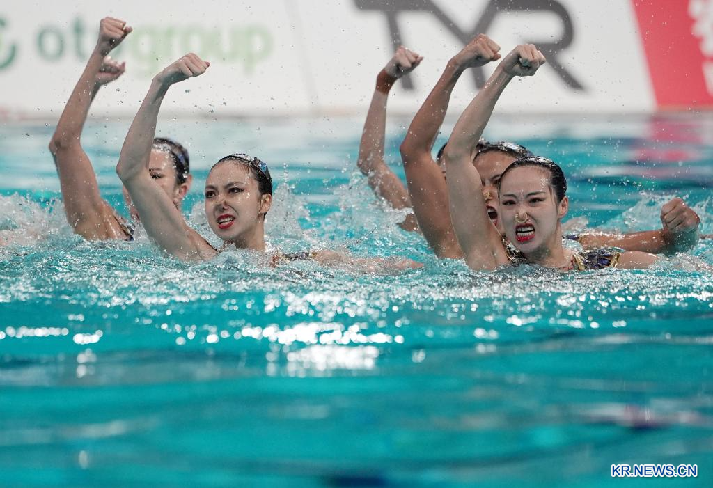 15일 진행된 ‘아티스틱 스위밍 월드컵 슈퍼 파이널 2025(Artistic Swimming World Cup Super Final 2025)’ 단체 테크니컬 루틴 결승에서 중국팀이 우승을 차지했다. [촬영/신화사 기자 리이보(李一博)]