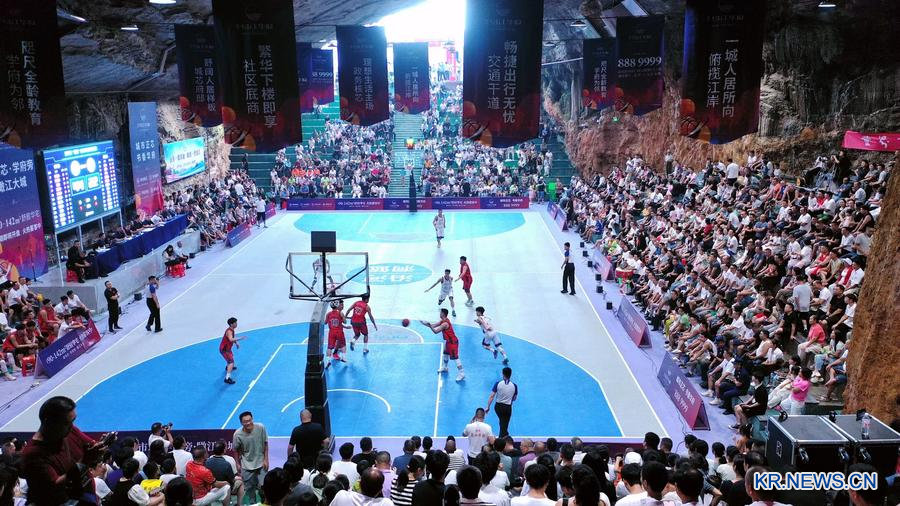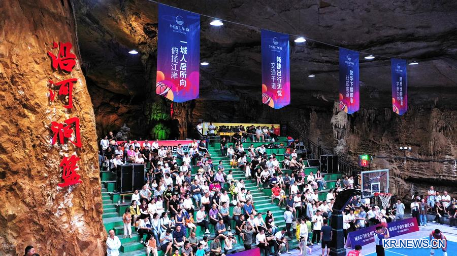 최근 구이저우(贵州)성에선 '춘차오(村超·마을 축구 슈퍼리그)'에 이어 '동굴 농구 리그'가 열풍을 일으키고 있다.