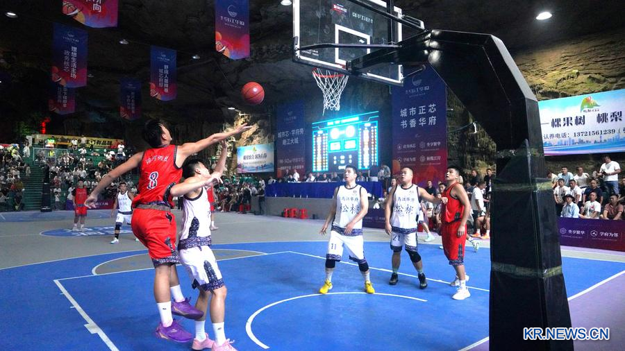 '제1회 옌허 동굴 농구 4개 성 초청경기' 현장. (옌허투자족자치현 미디어센터 제공)
