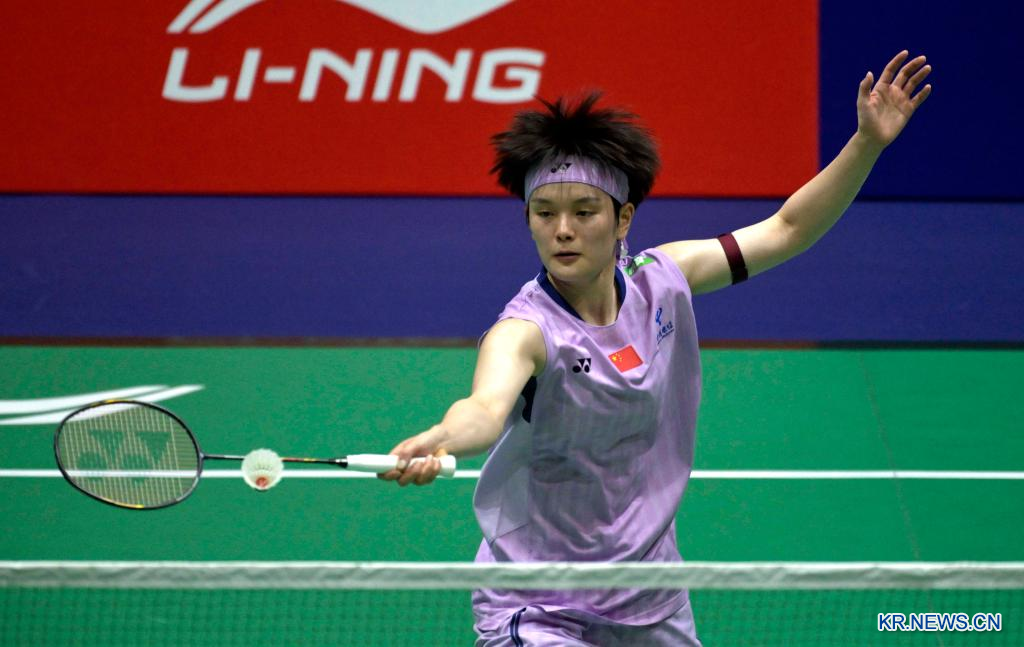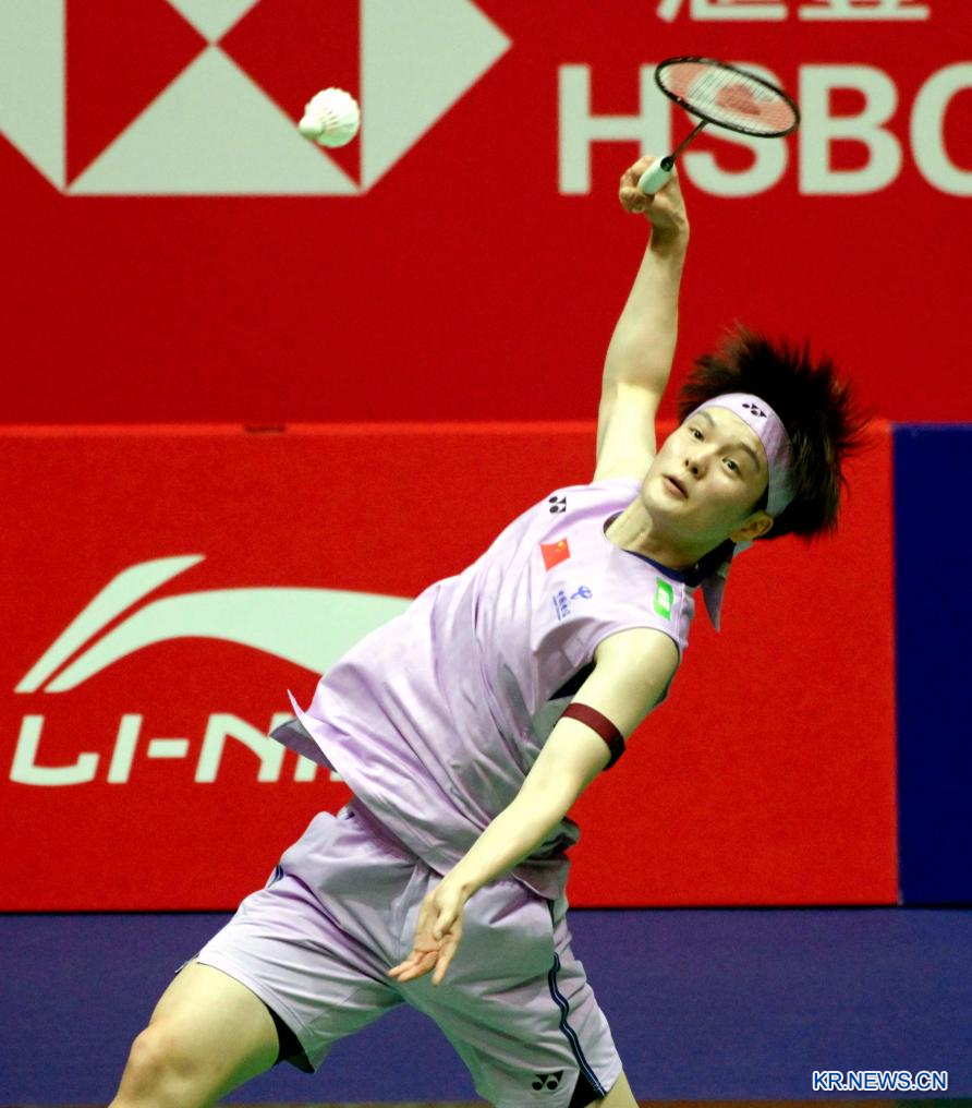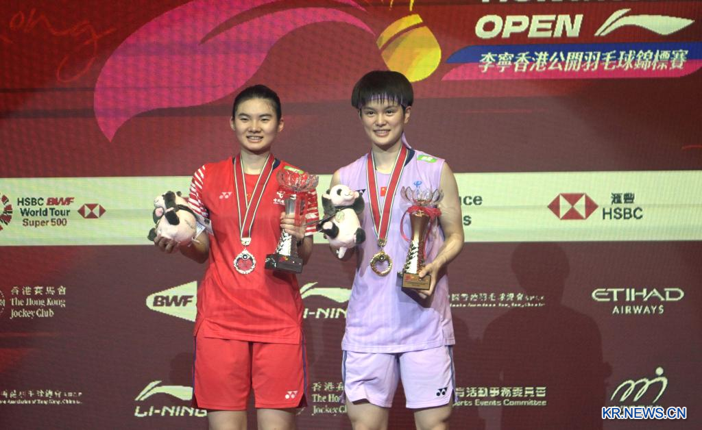14일 향항에서 열린 2025 세계배드민턴연맹(BWF) 향항오픈 여자단식 결승에서 왕즈이(王祉怡,중국)가 한웨(韩悦,중국)를 2대 0으로 이기고 우승을 차지했다.