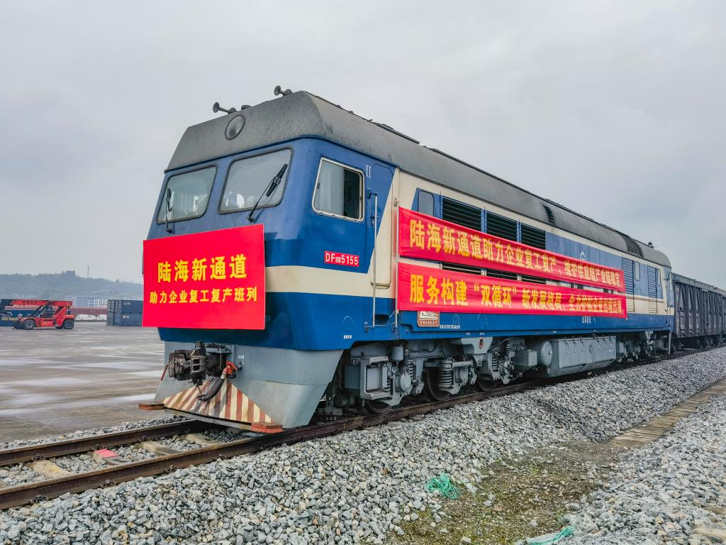 서부육해신통로 화물열차가 지난 17일 충칭의 한 물류센터에서 발차 대기 중이다. (사진/신화통신)