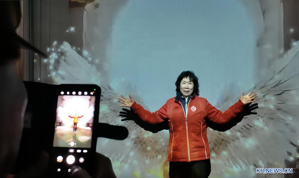 5월 6일 옌지(延吉)민속원 빛예술관에서 인증샷을 찍고 있는 한국인 관광객. (사진/신화통신)
