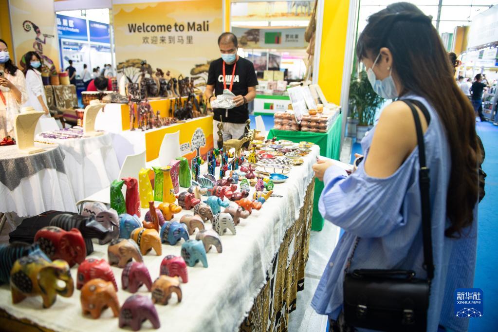 正在湖南长沙举行的第二届中国-非洲经贸博览会上,来自非洲的各种特色商品在长沙国际会展中心非洲商品展区展出,琳琅满目,引人驻足。