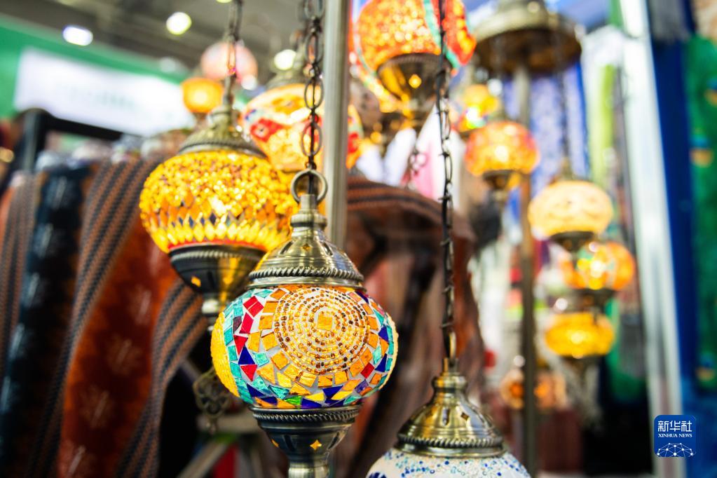 这是9月27日在长沙国际会展中心非洲商品展区拍摄的灯具。