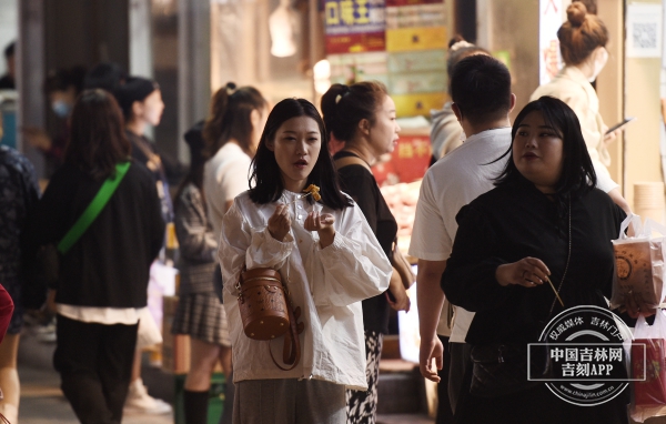 当晚,桂林路胡同人潮涌动,热闹不已,除了特色美食商家灯火通明外,街路中间的多个网红打卡地,也吸引了很多游客驻足,居民和游客到此街路既享受特色美食,又不时进行拍照留念,感受吉林特色街路有吃有玩的体验。