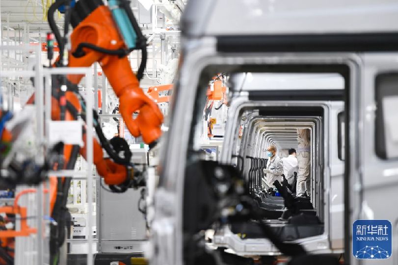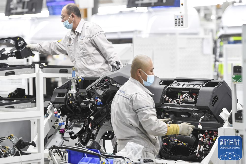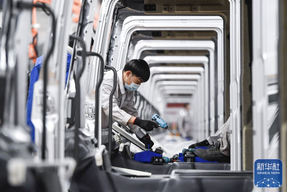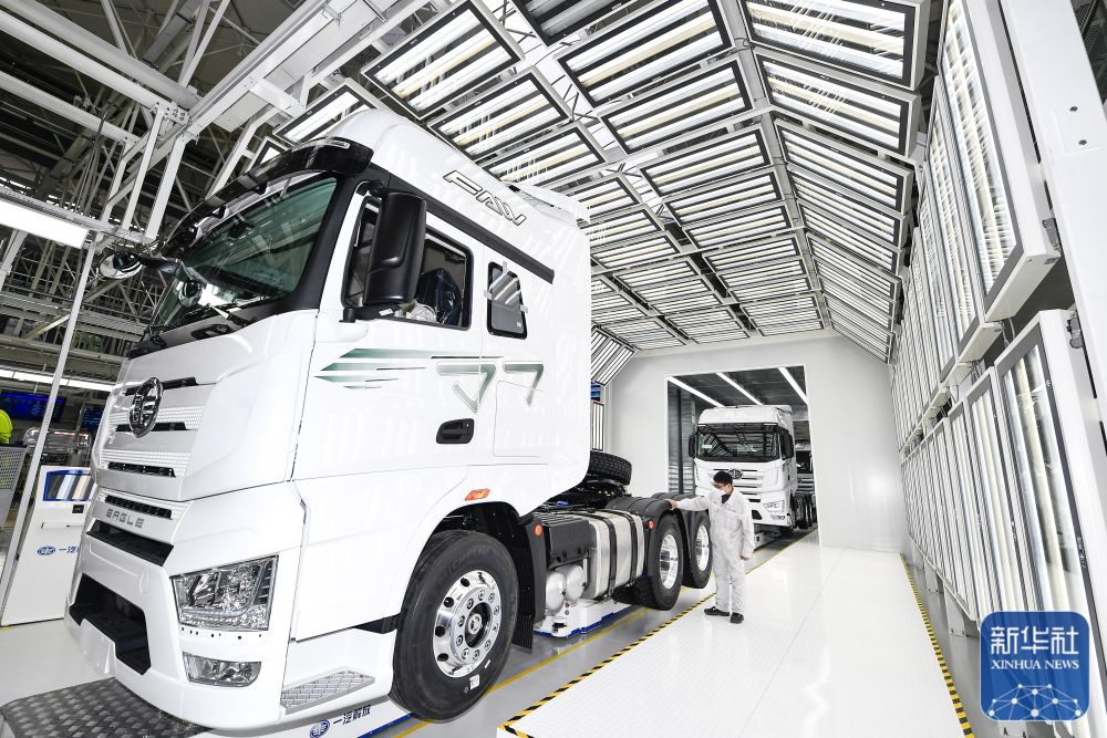 工作人员在位于吉林长春的一汽解放J7智能工厂内进行整车装配作业(1月31日摄)。