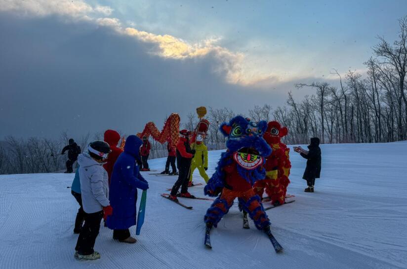 同在吉林市的北大湖滑雪度假区,也在春节期间举办了北大湖第二届新春游园会。舞龙表演、除夕烟花秀、小龙人巡游……丰富的年俗活动,让游客在享受冰雪运动乐趣的同时,领略中国传统文化的独特魅力。
