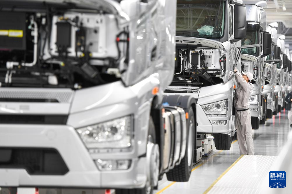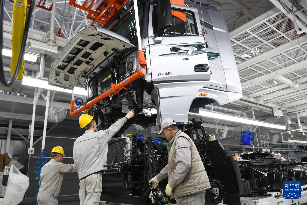 2月19日,工人在位于吉林省长春市的一汽解放J7整车智能工厂装配车辆。