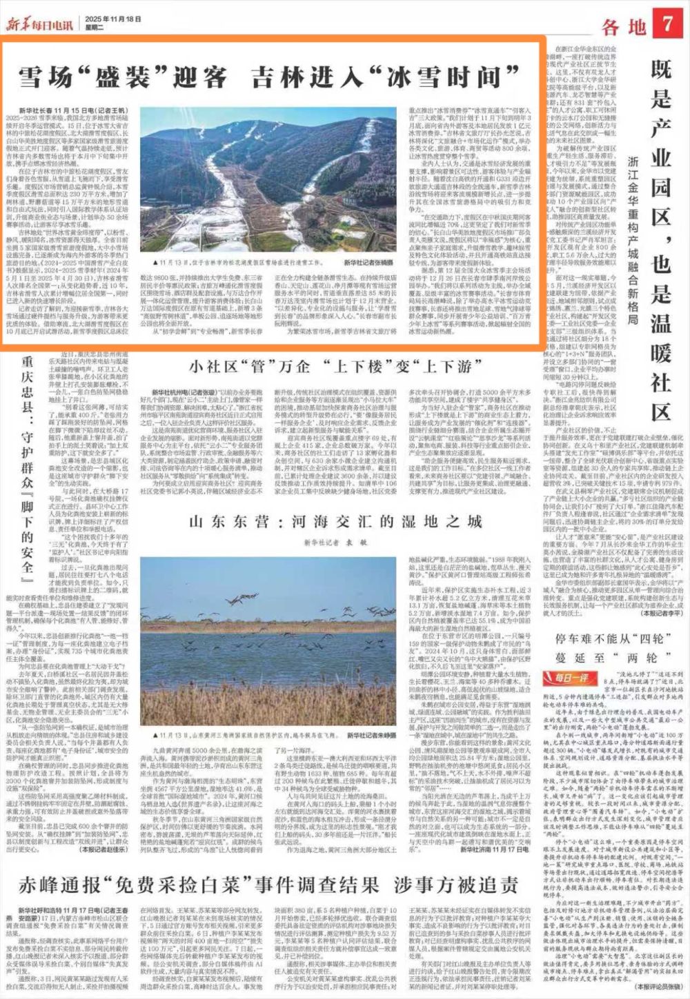 记者走访了解到,为迎接新雪季,吉林各大雪场通过硬件提档与服务升级,为游客带来更优质的体验。借助寒流,北大湖滑雪度假区在10月底已开启试滑活动,新雪季度假区总床位数达9800张,并持续推出大学生免费、东三省居民半价等惠民政策;吉旅万峰通化滑雪度假区围绕雪场、酒店群及配套设施,与万达合作开展一体化运营管理,提升游客消费体验;长白山万达国际度假区在原有雪道基础上,新增3条“高级野雪树林道”,单板公园、追逐场地等地形公园也将全面开放。