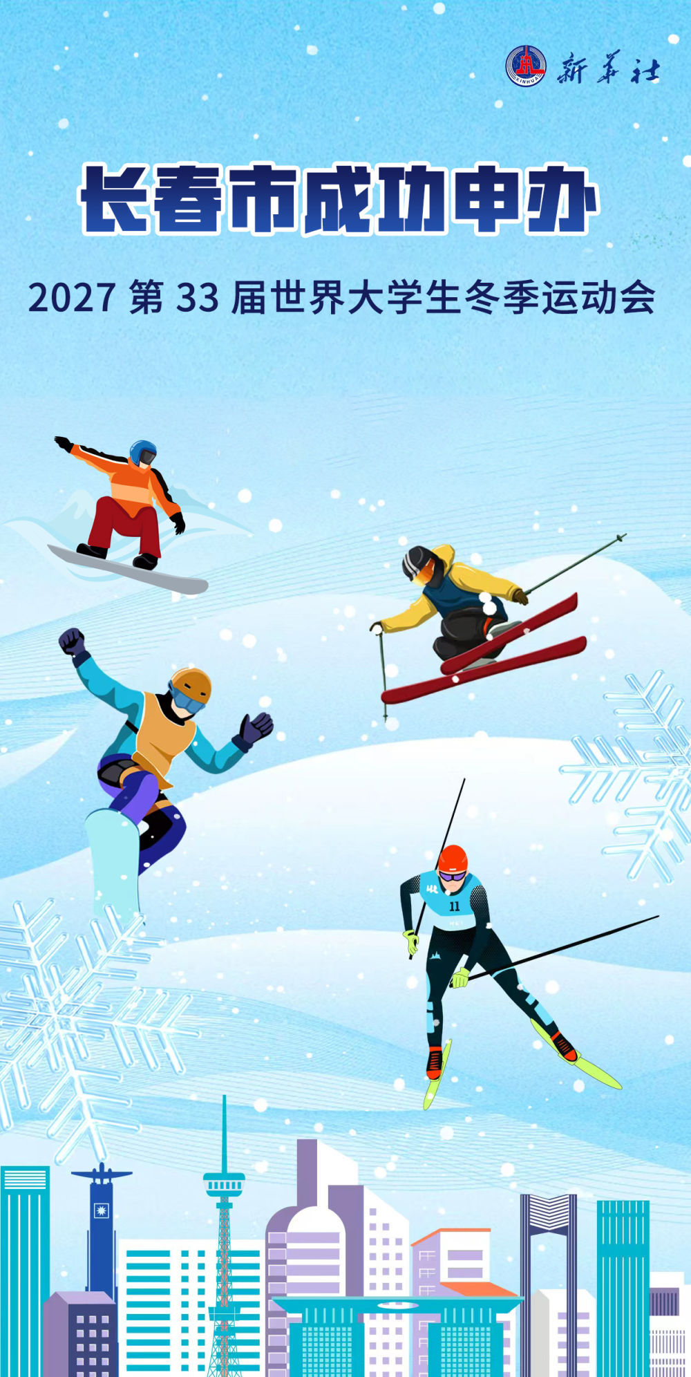 记者从26日召开的国际大学生体育联合会常务委员会会议上获悉,国际大体联主席雷诺·艾德正式宣布吉林省长春市成功申办2027第33届世界大学生冬季运动会。