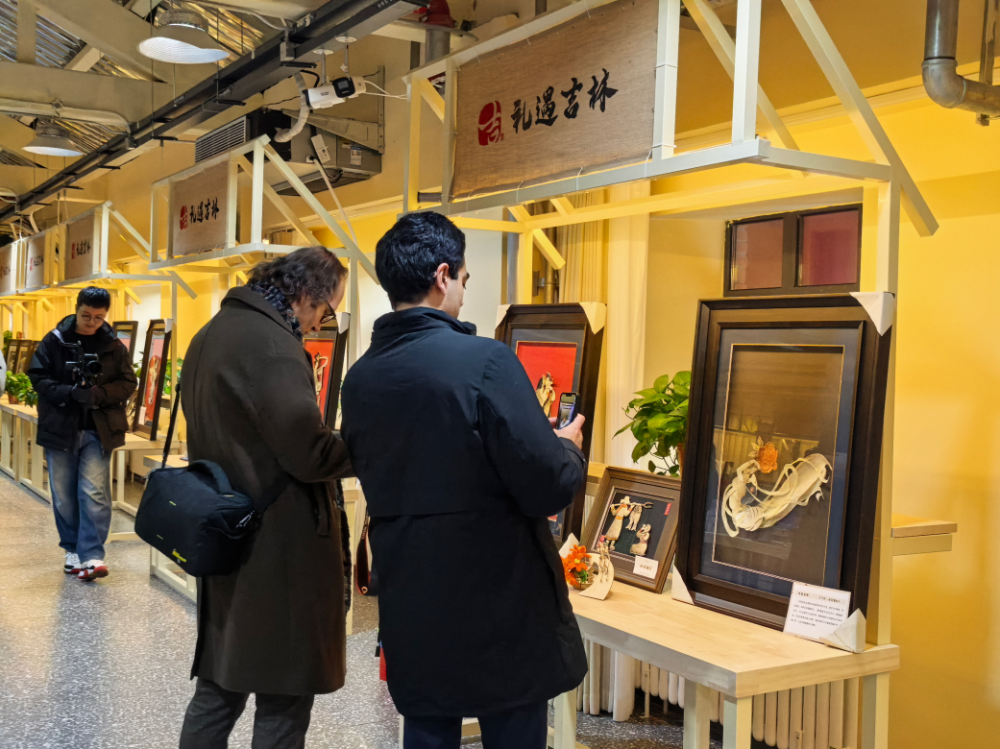 拾级而上,来到非遗手工体验中心,吉林省非物质文化遗产查干湖鱼皮画成为又一亮点。在制作技艺传承人徐毳的讲解和引导下,大家投入到鱼皮画的制作中,久久不能自拔。“过去我只知道中国的剪纸,但从来没有尝试过鱼皮画。鱼皮画是把当地的材料和文化相结合,我觉得这是一次非常有意义的体验。”于中美说。
