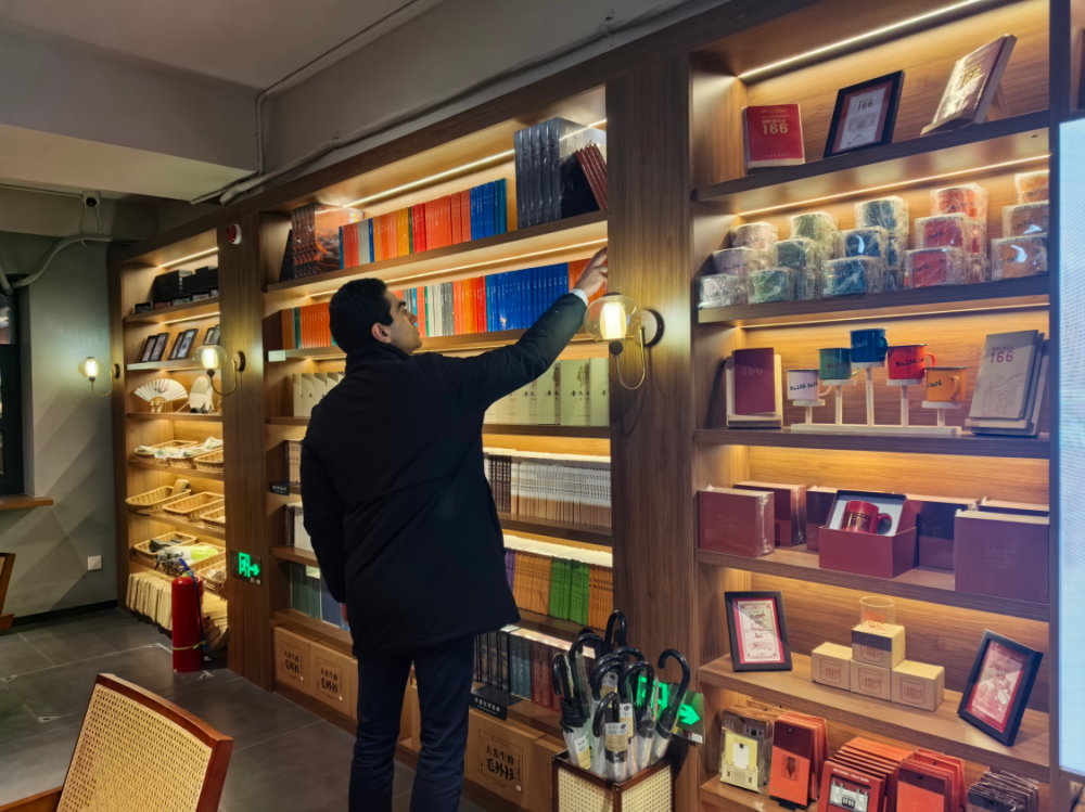 美国自媒体博主于中美在欣赏文创产品