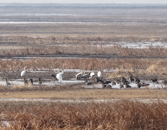 今年春季气候条件适宜,湿地解冻进程加快,湿地、草原、农田等食物资源充沛,为候鸟迁徙停歇筑牢了生态根基。据中国野生动物保护协会志愿者实地监测,目前已在全县3处核心湿地发现白鹤30余只,这群被世界自然保护联盟列为“极危物种”的国家一级保护动物,或静立滩涂或轻掠水面,在湿地安心觅食、休整体能。白鹤的准时抵达,不仅是候鸟迁徙节律的生动体现,更是镇赉湿地生态持续优化、生态屏障稳固有效的权威印证。