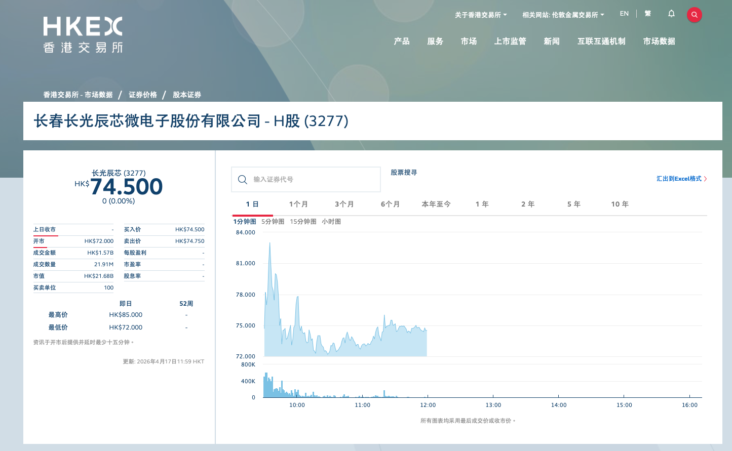上市首日,长光辰芯以每股72港元开盘,较发行价39.88港元大涨80.54%,开盘总市值达313.41亿港元(约合人民币273亿元)。