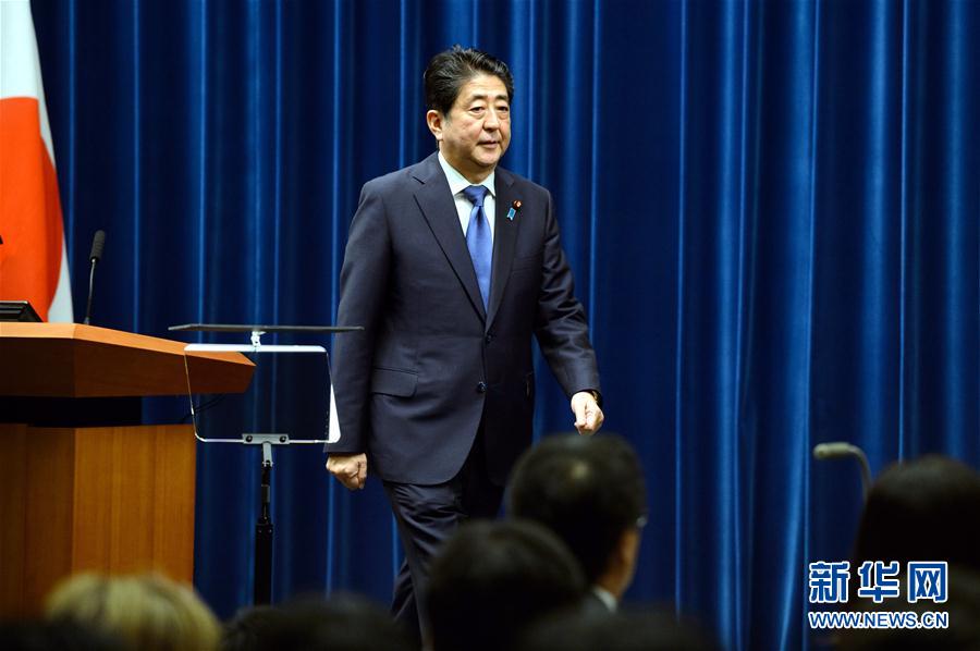 9月25日,日本首相安倍晋三在东京首相官邸举行的记者会上回答记者提问。 日本首相安倍晋三25日宣布将于28日解散众议院,提前举行大选。新华社发