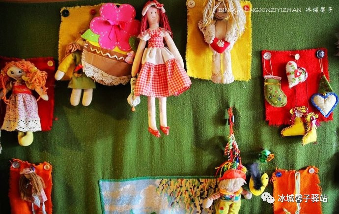 细细看来,墙上挂着的都是手工布娃娃,那些小挂鞋子,太精巧了。