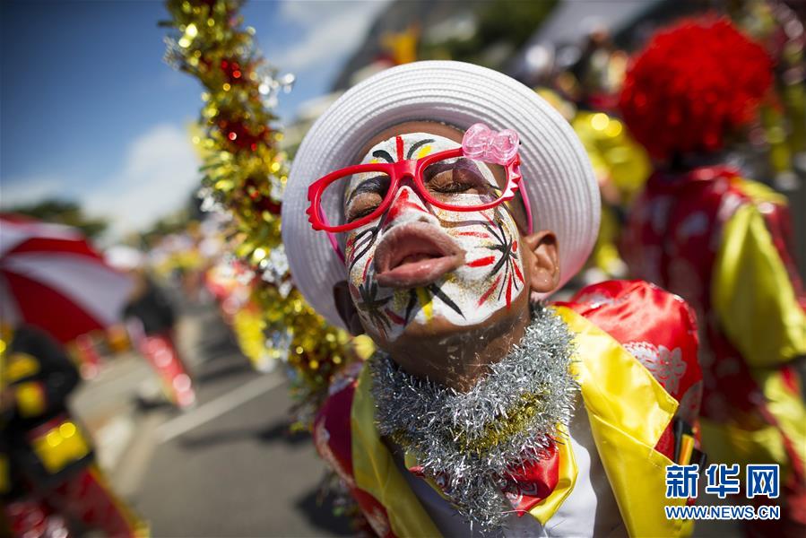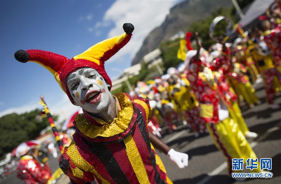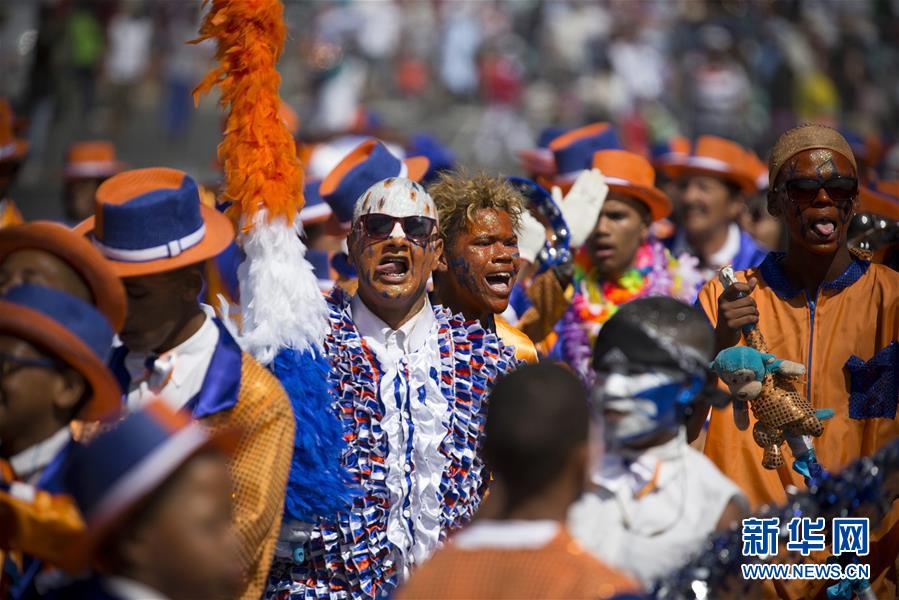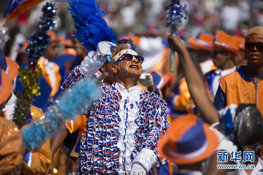 1月2日,在南非开普敦,开普敦吟游诗人乐团的成员化妆参加“第二新年”狂欢节游行活动。