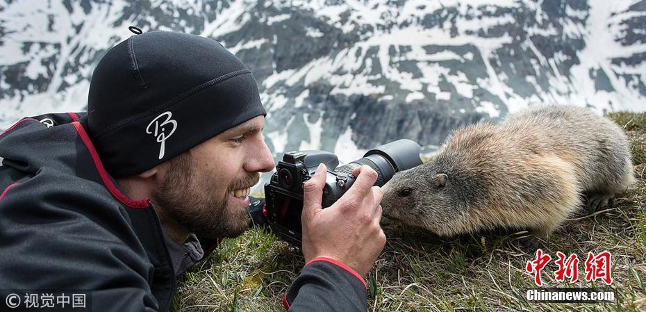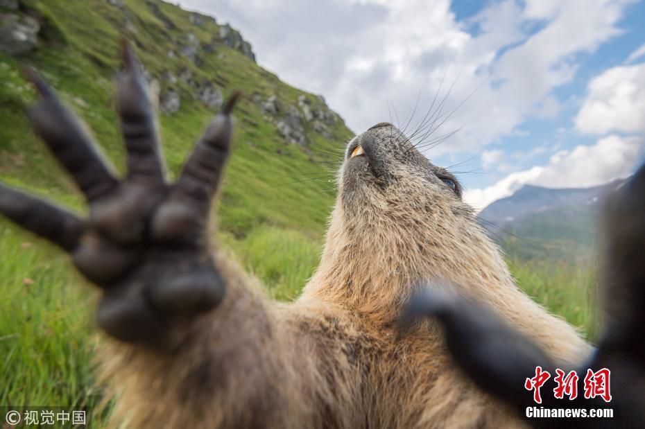 2018年7月19日消息,野生动物摄影师在上陶恩山国家公园近距离抓拍一群土拨鼠,显然这只土拨鼠内心是很拒绝的。图片来源:视觉中国