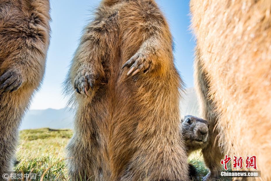 比起肩负颜值重担的成年土拨鼠,小土拨鼠对于镜头的好奇和渴望显而易见,即便被挡住,也要从成年土拨鼠的身体间窥视。图片来源:视觉中国