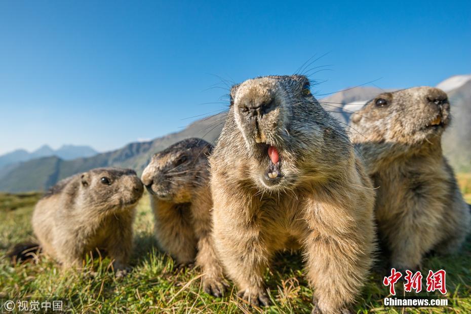野生动物摄影师在上陶恩山国家公园近距离抓拍一群土拨鼠。图片来源:视觉中国