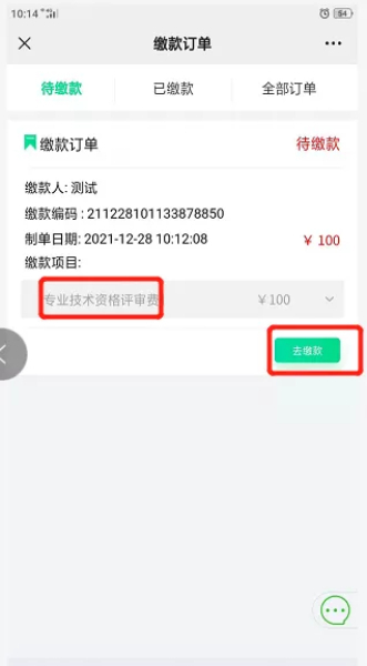 3.登录到缴款界面后,核对好项目和金额,点击去缴款